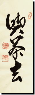 この無心の働きからでるところに、茶道家はこの「喫茶去」の語を茶掛けとして尊んで自ら無心に茶を点て、貧富貴賎の客を択ばず無心に施す心を養ってきたことだろう。私たちはおうおうにして、好きな人や、金持ちや身分の高い人が来れば鄭重にもてなし、嫌いな人や貧しい人にはいい加減な対応をしてしまいがちである。分別を入れず、誰に対しても計らい無く、真心から接して行きたいものである。