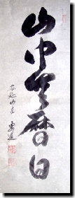 この句は所縁を放擲し、一切の捉われなく「無」に徹し、洒々落々の道人の心境を表した語であるが、禅語としては、単に実際の深山幽谷の山中の静寂そのもの環境に身をおいて花鳥風月を眺めている閑道人であることを決して喜び尊しとはしない。